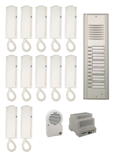 ACI FARFISA Kaputelefon szett, 4+1 vezetékes, 12 lakásos, Project-ErreP/R széria, süllyesztett kültérivel, 12xPT524SW, RP12+MD30, PRS220 egységekből