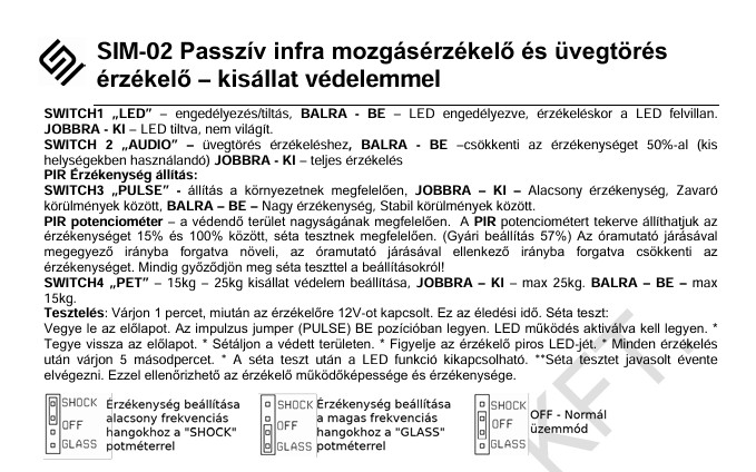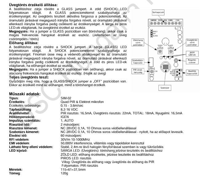 SIM-02 Mozgásérzékelő, üvegtörésérzékelővel