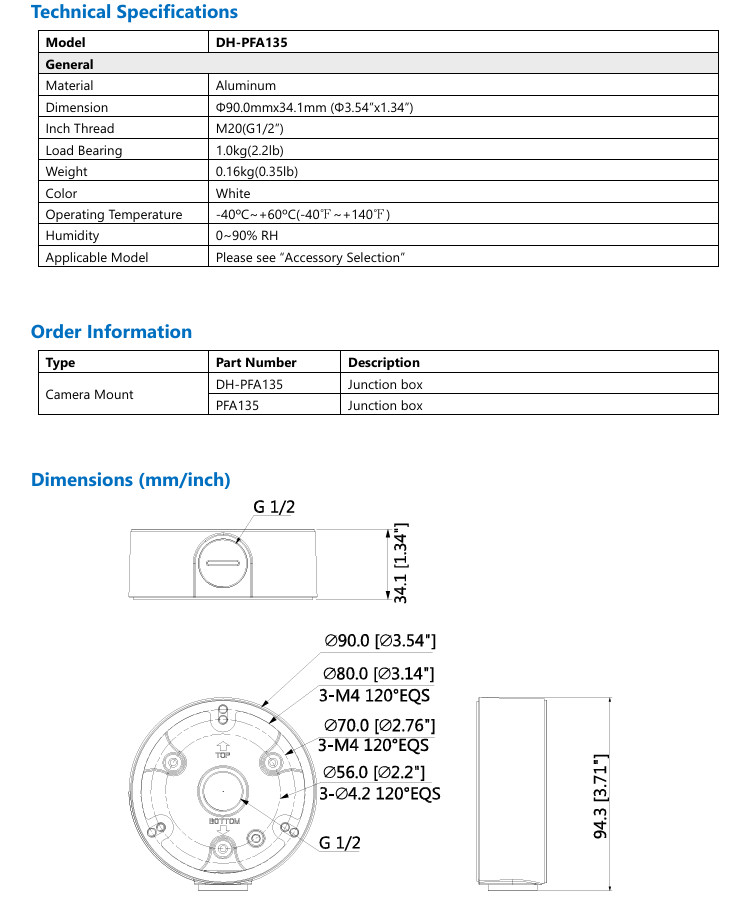 Gyártó DahuaCikkszám AK-PFA135-QNJ